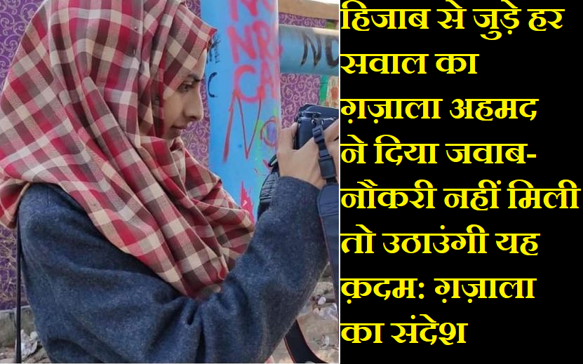 ग़ज़ाला अहमद वह मुस्लिम महिला हैं जिन्हें हिजाब पहनने की वजह से नौकरी नहीं मिली। उन्होंने वतन समाचार से बातचीत में कहा कि वह हिजाब की रक्षा के लिए हर तरह के लोकतांत्रिक कदम उठाएंगी और जरूरत पड़ी तो कानूनी लड़ाई लड़ेंगी। उन्होंने कहा कि वह इसे एक मूवमेंट के तौर पर लेंगी। गजाला अहमद ने कहा कि अगर नौकरी नहीं मिलती है तो वह अपना खुद का वेंचर (कोई पोर्टल) शुरू करेंगी। जिसके माध्यम से वह उन तमाम लोगों को एक साथ लाएंगी जिनके साथ अब तक भेदभाव होता रहा है। ग़ज़ाला अहमद ने कहा कि हिजाब यह सिर्फ मुसलमानों का मसला है और ऐसी बहुत सी महिलाएं अब उनके साथ जुड़ रही हैं, जिन्हें इस से पहले प्रताड़ना झेलनी पड़ी है, हिजाब की वजह से।