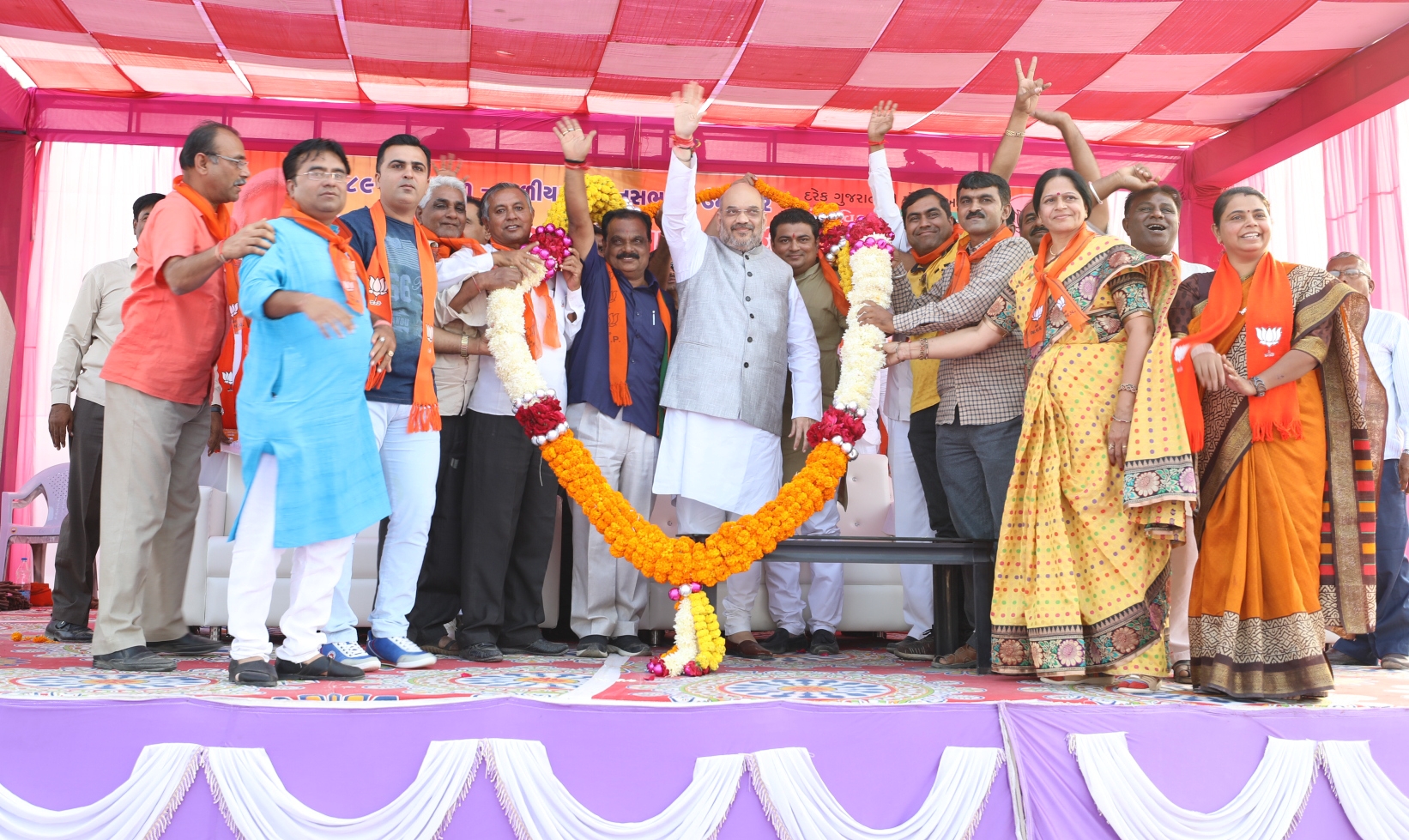 कांग्रेस पर करारा प्रहार करते हुए शाह ने कहा कि कांग्रेस को यह स्पष्ट करना चाहिए कि वह गुजरात में किस मुद्दे पर चुनाव लड़ रही है। उन्होंने कहा कि कांग्रेस केवल विरोध के आधार पर और जातिवाद के आधार पर राजनीति करती है जबकि भारतीय जनता पार्टी विकास के आधार पर चुनाव लड़ती है। उन्होंने कहा कि गुजरात में भारतीय जनता पार्टी की सरकार ने विकास के नए आयाम स्थापित किये हैं। गुजरात के हर गाँव में 24 घंटे विद्युत् आपूर्ति सुनिश्चित की गई है, सड़क, पानी, शिक्षा, कृषि और स्वास्थ्य के क्षेत्र में व्यापक सुधार हुए हैं लेकिन राहुल गांधी को गुजरात का विकास दिखाई नहीं देता।