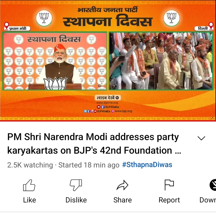 प्रधानमंत्री नरेंद्र मोदी ने जहां देशवासियों को नवरात्रि की शुभकामनाएं दी, वहीं उन्होंने भाजपा के कार्यकर्ताओं और समर्थकों को भी बधाई दी लेकिन बड़ी बात यह कि जब प्रधान मंत्री जेपी नड्डा के बाद बोल रहे थे उस वक्त बीजेपी के यूट्यूब लिंक पर लगभग 2500 लोग ही इस प्रोग्राम को लाइव देख रहे थे, जबकि बीजेपी अपने आप को दुनिया की सबसे बड़ी पार्टी के तौर पर क्लेम करती है और एक भी कि लाइक ओर डिसलाइक एक भी नहीं था, यह तब था जब पहले नड्डा बोल चुके थे और PM ने बोलना शुरू कर दिया था.