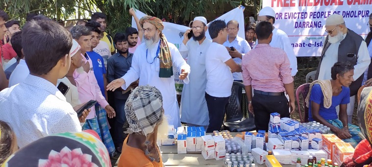 जमीयत उलमा ए हिंद के राष्ट्रीय अध्यक्ष मौलाना महमूद मदनी के निर्देश पर एक सम्मानीय प्रतिनिधिमंडल जिसमें जमात-ए-इस्लामी के केंद्रीय कार्यकर्ता भी शामिल हैं। इन दिनों असम के दौरे पर हैं। आज संयुक्त प्रतिनिधि मंडल ने दरांग ज़िले के धौलपुर बस्ती में निकले और उजड़े तथा पुलिस कार्रवाई से प्रभावित परिवारों से भेंट की। विशेषकर अमानवीय हिंसक घटना में मरने वाले मोइनुल हक 37 वर्ष (गोली मारने के बाद जिस के मृत शरीर पर पुलिस ने लाठियां बरसाई थीं और एक व्यक्ति उसके सीने पर कूद रहा था) के मां-बाप, बच्चे और विधवा से मुलाकात की। उस समय सभी की आंखों से आंसू छलक उठे। इस अवसर पर जमीयत उलमा असम के अध्यक्ष मौलाना बदरुद्दीन अजमल के परामर्श से जमीअत उलमा असम और अजमल फाउंडेशन की ओर से मृतक के परिवार को दो लाख रुपये सहायता राशि दी गई। इसी तरह 14 वर्षीय शेख फरीद के माता-पिता को भी जमीयत उलमा की ओर से दो लाख रुपये दिये गये। इसके अलावा 900 परिवारों में प्रत्येक को खाद्य सामग्री यानि खाने की वस्तुओं कि किट, जिसमें, 25 किलो चावल, 2 किलो दाल, 2 किलो चीनी, 2 किलो तेल, 2 किलो नमक, 2 किलो मसाला और बच्चों के लिए बिस्किट शामिल हैं। 200 हैंडपम्प्स और 900 टेंट भी प्रभावित परिवारों में वितरित किए गए। जमात ए इस्लामी हिंद की ओर से वहां मेडिकल शिविर लगाया गया। जमात ए इस्लामी हिंद की ओर से प्रतिनिधिमंडल में श्री अमीन उल हसन उपाध्यक्ष जमात इस्लामी हिंद, मोहम्मद शफी मदनी सेक्रेटरी जमात इस्लामी हिंद मौजूद थे।