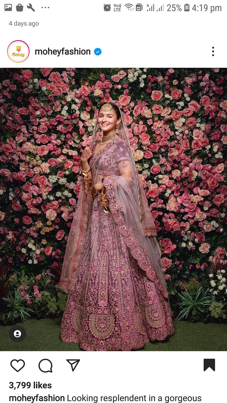 गुलाबी लहंगे में सामने आई आलिया,मुस्कुराती आलिया किसी शहज़ादी से कम नहीं लग रही और फुल दुल्हन वाली फीलिंग ले रही है।