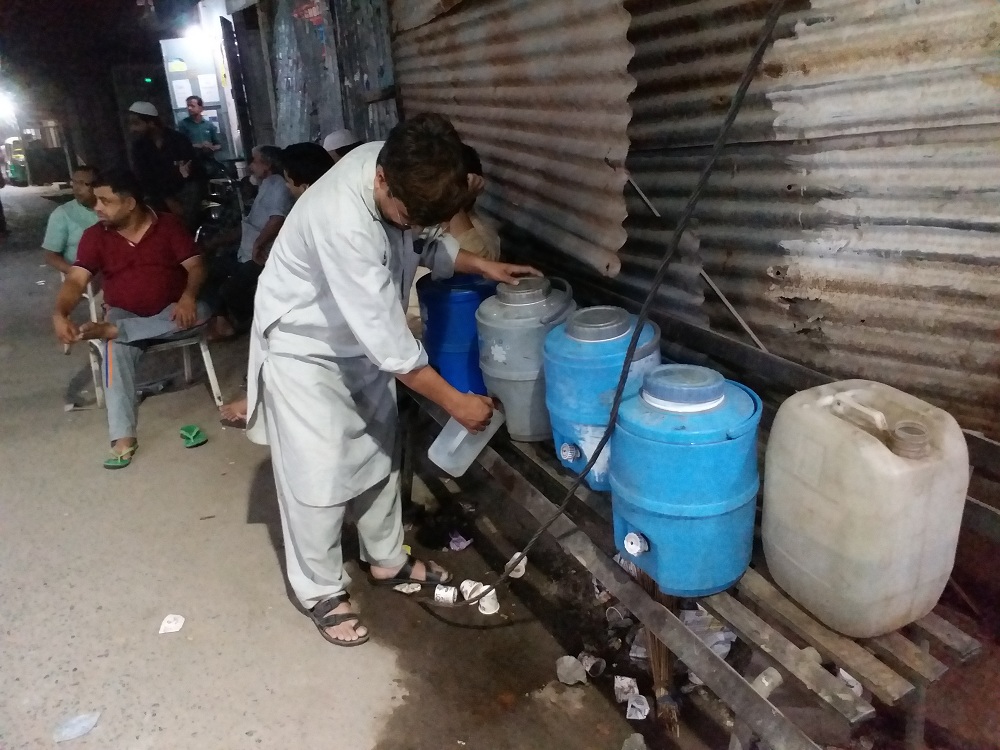 (ii)पानी भरते हुए एशिया टाइम्स के एडिटर अशरफ बस्तवी ( यह पानी फ्री में लोगों के लिए उपलब्ध है