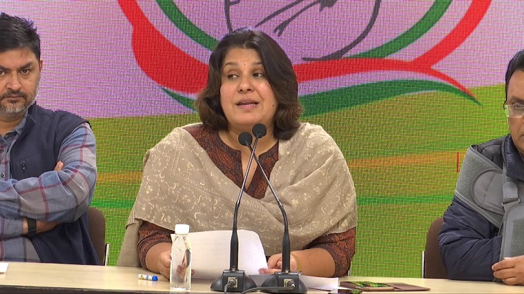 कोंग्रेस प्रवक्ता सुप्रिया श्रीनेट ने एआईसीसी मुख्यालय में मीडिया को संबोधित किया।