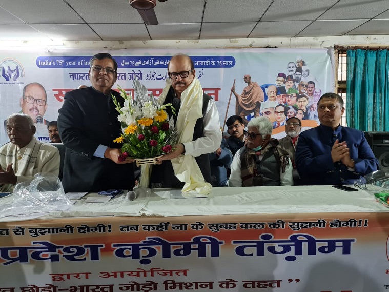 श्री अनवर ने कहा कि हम गांधी के मानने वाले लोग हैं और हम अहिंसा वादी लोग हैं, इसलिए इस मुल्क को खंडित होने से बचाने के लिए सबसे बड़ी जिम्मेदारी हमारी है। उन्होंने कहा कि एक तरफ वह लोग हैं जिन्होंने गांधी जी की सीने में 3 गोलियां उतार दीं और दूसरी तरफ वह लोग हैं जो गांधी जी की अहिंसा नीति को लेकर के आगे बढ़ रहे हैं। इसलिए जरूरी है कि अहिंसा वादी लोग आगे आएं और अपना राजधर्म निभायें। उन्होंने कहा कि ऑल इंडिया कौमी तंजीम पूरे देश में आजादी के 75 में पर्व के अवसर पर लोगों से अपील करती है कि वह अपनी जिम्मेदारियों को समझें और गरीबी भुखमरी व संप्रदायिकता और नफरत को मिटाने के लिए आगे आएं। उन्होंने कहा कि आज सत्ता में बैठे लोग धर्म और राजनीति को एक साथ मिलाकर के मुल्क के सिद्धांतों से खेल रहे हैं। धर्म और राजनीति दो अलग-अलग चीजें हैं दोनों को इकट्ठा करना ठीक नहीं है।