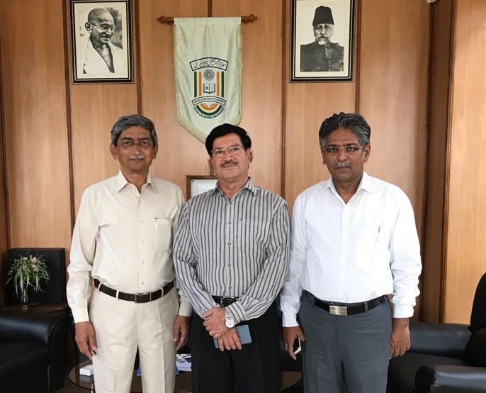 मौलाना आजाद नेशनल उर्दू यूनिवर्सिटी के नवनिर्वाचित चांसलर फिरोज बख्त अहमद को बीच में देखा जा सकता है