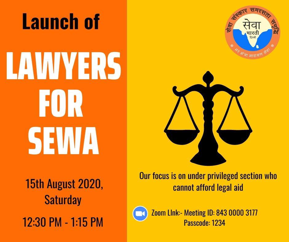 जैसा की विदित है, सेवा भारती आर्थिक रूप से कमजोर वर्ग, जनजातीय, जरूरतमंद लोगों के लिए पिछले कई वर्षों से काम करता रहा है आज स्वतंत्रता दिवस के मौके पर सेवा भारती द्वारा “ लॉयर्स फॉर सेवा “ प्रकल्प का उद्घाटन किया जा रहा है इस प्रकल्प के माध्यम से सेवा भारती दिल्ली द्वारा अपने सभी जरूरतमंद लोगों को मुफ्त कानूनी सलाह की सेवा दी जाएगी, इसके साथ साथ आकांक्षी अधिवक्ताओं को भी दिशा देने का कार्यभी किया जायेगा , दिल्ली सर्वोच्च न्यायालय, दिल्ली उच्चतम न्यायालय के अनेकों विद्वान अधिवक्ताओं की इसमें भाग्यता रहेगी प्रकल्प का मुख्य उद्देश्य होगा कि कानूनी सलाह के द्वारा वंचित और असक्षम की सेवा करना होगा,
