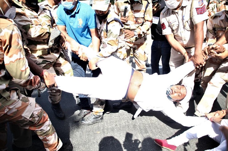 नई दिल्ली: उत्तर प्रदेश सरकार सरकार ने अपराधियों को बचाने के लिए, तथ्यों को छिपाने के लिए आधी रात को हाथरस गैंगरेप पीड़िता का अंतिम संस्कार किया। उत्तर प्रदेश सरकार अमानवीय रवैये को लेकर भारतीय युवा कांग्रेस ने नई दिल्ली स्थित उत्तर प्रदेश भवन का घेराव किया। भारतीय युवा कांग्रेस के राष्ट्रीय अध्यक्ष श्री निवास बीवी ने इस घेराव का नेतृत्व किया। इस अवसर पर उन्होंने कहा, ‘हाथरस की पीड़ित बहन को न चार कंधे नसीब हुए, न घर का आंगन मिला, भारत की उस बेटी को तथाकथित डबल इंजन वाली योगी आदित्यनाथ सरकार जीते जी सुरक्षा और और मरने के बाद सम्मानजनक विदाई देने में असफल रही है। रात के अंधेरे में छिपकर परिजनों के बिना अंतिम संस्कार करना भाजपा के धार्मिक ढोंग को उजागर करता है। यह भाजपा सरकार की नाकामी है। मुख्यमंत्री योगी आदित्यनाथ को इस असफलता के लिए अपने पद से इस्तीफा देना चाहिए।’