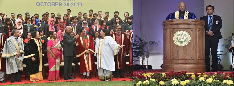 राष्ट्रपति श्री रामनाथ कोविंद आज (30 अक्टूबर, 2019) नई दिल्ली में जामिया मिलिया इस्लामिया के वार्षिक दीक्षांत समारोह में पधारे और छात्रों को संबोधित किया। इस अवसर पर राष्ट्रपति ने कहा कि सरकार समसामयिक चुनौतियों से निपटने के लिए शैक्षिक वातावरण में बदलाव करती रही है। भारत को एक ‘ज्ञान की महाशक्ति’ के रूप में स्थापित करना मानव संसाधन विकास मंत्रालय द्वारा प्रस्तावित ‘राष्ट्रीय शिक्षा नीति’ के महत्वपूर्ण उद्देश्यों में से एक है। पूरा विश्व भारत के छात्रों की असाधारण प्रतिभा से अवगत है।