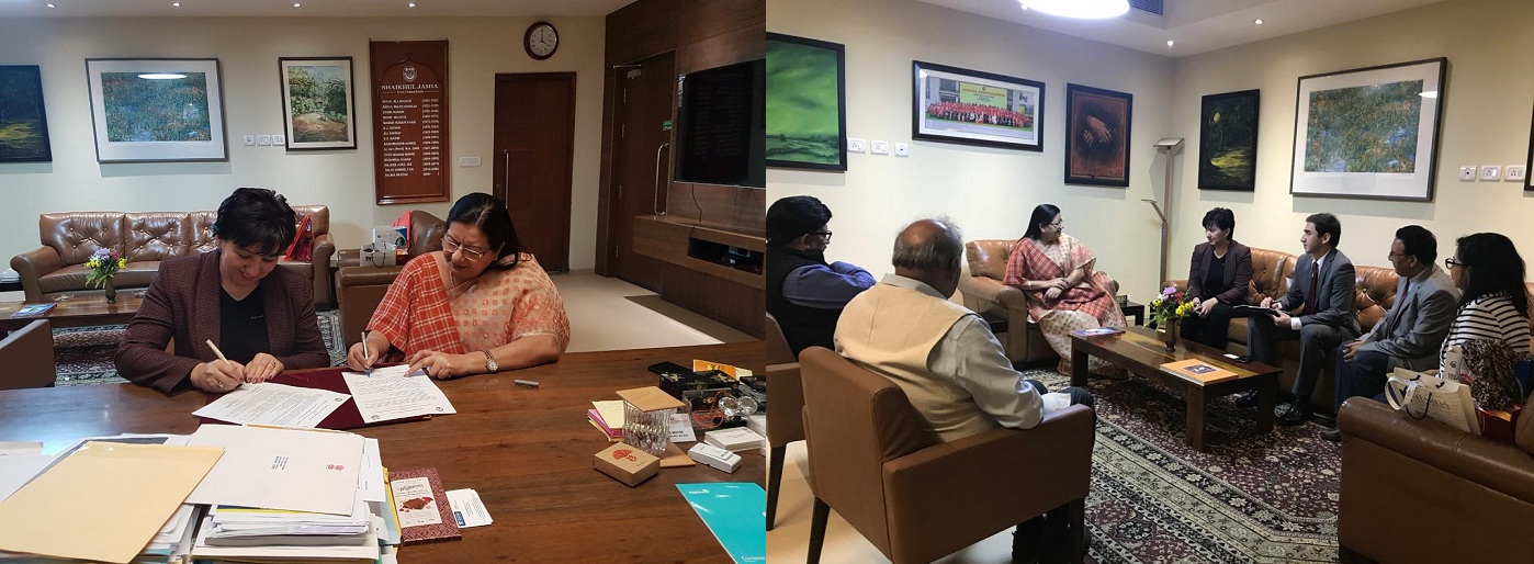 ताशकंद स्टेट इंस्टीट्यूट ऑफ ओरिएंटल स्टडीज की रेक्टर डॉ गुलचेहरा रेक्सिवा और जामिया की कुलपति प्रो नजमा अख़्तर ने सहयोग समझौता पर हस्ताक्षर किए।
