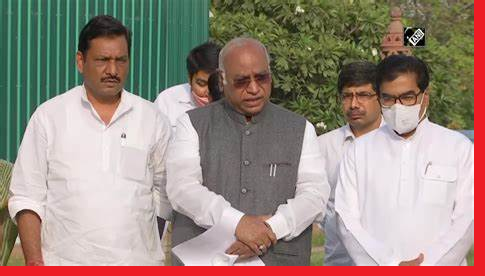 मल्लिकार्जुन खरगे ने पत्रकारों को संबोधित करते हुए कहा कि आप सभी को मेरा नमस्कार! आज हम बिहार के घटनाक्रम के निमित यहाँ पर आए हैं, जिसमें हमारे वरिष्ठ नेता, रामगोपाल यादव जी हैं, प्रोफेसर, झा साहब हैं, संजय जी हैं, हमारे अखिलेश जी हैं और वंदना चौहान जी हैं, विल्सन जी हैं और सभी पार्टी के नेतागण यहाँ पर उपस्थित हैं।