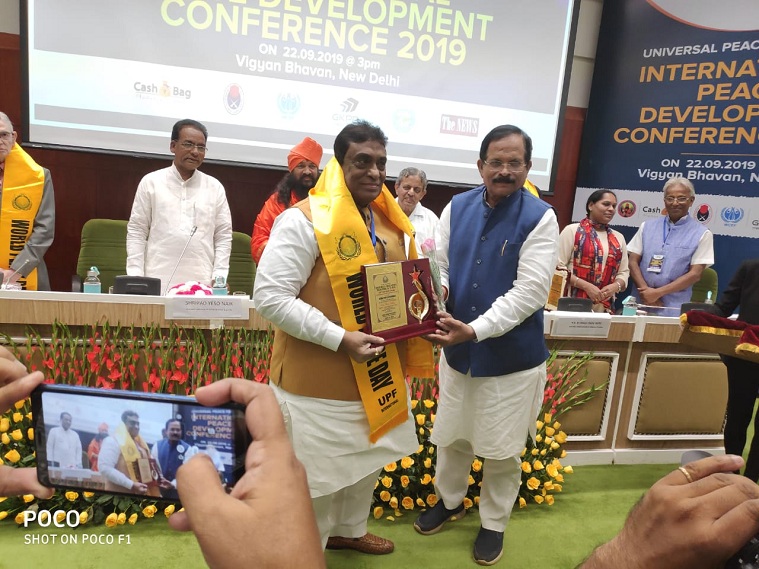 नयी दिल्ली: अल्पसंख्यक कार्य मंत्रालय भारत सरकार के तत्वधान में काम करने वाली संस्था सेंट्रल वक़्फ़ काउंसिल के सदस्य रईस खान पठान को यूनिवर्सल पीस फेडरेशन की ओर से बीते रोज़ ग्लोबल पीस सिटीजन अवार्ड से सम्मानित किया गया. उन्हें यह सम्मान मिनिस्टर ऑफ स्टेट स्वतंत्र प्रभार यशो पद नाईक के हाथों विज्ञान भवन में दिया गया.