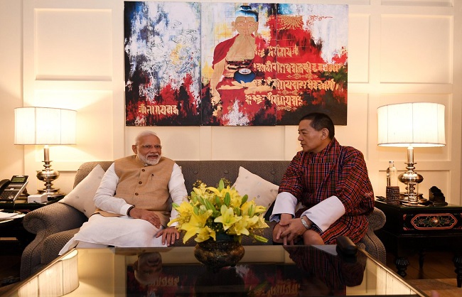 भूटान के प्रधानमंत्री डॉ लोटे त्शेरिंग से द्विपक्षीय वार्ता के बाद दोनों नेताओं ने भारत के सहयोग से निर्मित इन परियोजनाओं का उद्घाटन किया। दोनों प्रधानमंत्रियों की मौजूदगी में 10 करारों और समझौतों पर भी हस्ताक्षर किये गए। पारो अन्तर्राष्ट्रीय हवाई अड्डे पर स्वागत, रास्तों में लोगों की दोनों ओर कतारे ,गार्डआफ आनर और भारतीय समुदाय के लोगोंसे मुलाकात से अभीभूत मोदी ने संयुक्त प्रेसवार्ता में भूटान के साथ भारत की मैत्री को अद्वितीय बताते हुए कहा कि भूटान जैसा मित्र और पड़ोसी देश कौन नहीं चाहेगा। दोनों देशों के बीच साझा आध्यात्मिक विरासत का उल्लेख करते हुए उन्होंने कहा कि दोनों देशों के सुरक्षा हित भी जुड़े हुए हैं।आर्थिक और सांस्कृतिक सम्बन्धों को और बेहतर बनाने की काफी संभावनाएं हैं।
