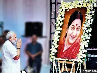 सुषमाजी के वक्तव्य में विचारों की गहराई हर कोई अनुभव करता था, तो अनुभव की ऊंचाई भी हर पल नए मानक पार करती थी। ये दोनों होना एक साधना के बाद ही हो सकता है। मोदी ने कहा कि आमतौर पर हम देखते हैं कि कोई मंत्री या सांसद जब अपने पद पर नहीं रहता है,लेकिन सरकार को उसका मकान खाली कराने के लिए सालों तक नोटिस भेजनी पड़ती है। कभी कोर्ट-कचहरी तक होती है। किंतु सुषमा ने चुनाव नतीजे आने के बाद पहला काम मकान खाली करके अपने निजी निवास स्थान पर वो पहुंच गईं।