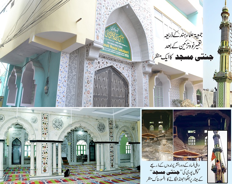 जन्नती मस्जिद गोकलपुरी के पुनर्निर्माण, सुन्दरीकरण और दंगों में जलाए गए मकान प्रभावितों के हवाले करने के अवसर पर अध्यक्ष जमीअत उलमा-ए-हिंद मौलाना अरशद मदनी ने कहा कि हम इसके लिए अल्लाह का जितना भी शुक्र अदा करें कम है। उसने इस अहम काम के लिए न केवल जमीअत उलमा-ए-हिंद को माध्यम बनाया बल्कि उसके लिए साधन भी प्रदान किए। उन्होंने कहा कि दिल्ली दंगा क्षेत्रों में अपनी परंपरा के अनुसार जमीअत उलमा-ए-हिंद ने धर्म से ऊपर उठकर केवल मानवीय आधार पर सभी पीड़ितों और जरूरतमंदों को रीलीफ प्रदान कराई है, आगे भी अल्लाह ने चाहा तो ये सिलसिला जारी रहेगा।