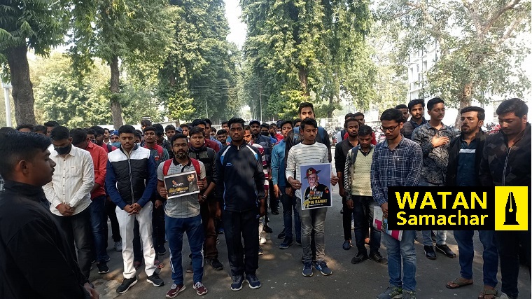 लखनऊ: लखनऊ यूनिवर्सिटी के छात्रों ने कैंपस में जनरल बिपिन रावत को 5 मिनट मौन रहकर श्रद्धांजलि दी. उसके बाद लखनऊ यूनिवर्सिटी के के छात्रों ने कई नारे लगाए जब तक सूरज चांद रहेगा रावत तेरा नाम रहेगा जैसे नारों से लखनऊ यूनिवर्सिटी केंपस गूंज उठा. उसके बाद छात्रों ने लाइन लगाकर विपिन रावत की तस्वीरों पर पुष्प विसर्जित किया.